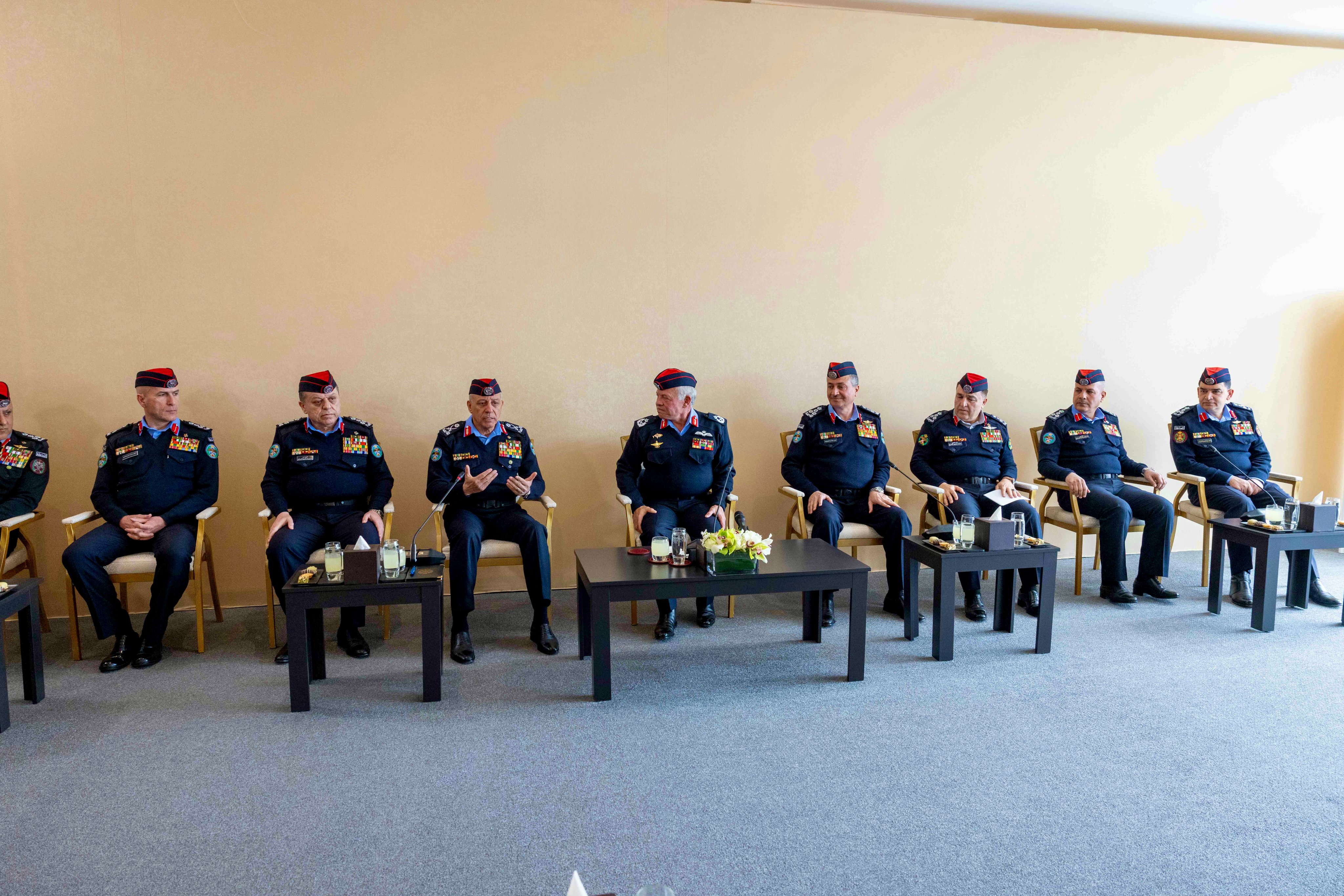 During a meeting with Public Security Directorate (PSD) Director Maj. Gen. Obeidallah Maaytah and a number of PSD directors and leaders, His Majesty expressed pride in the PSD and its personnel and their efforts to maintain national security and uphold the rule of law.
