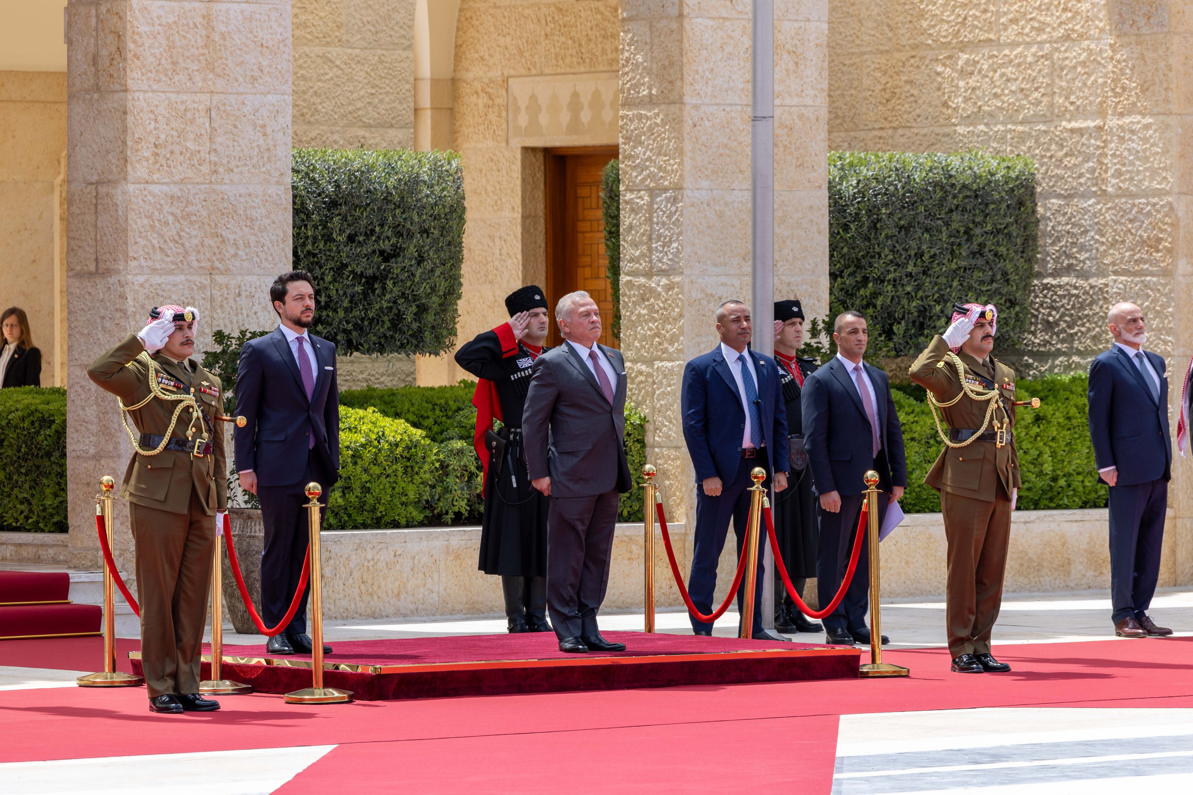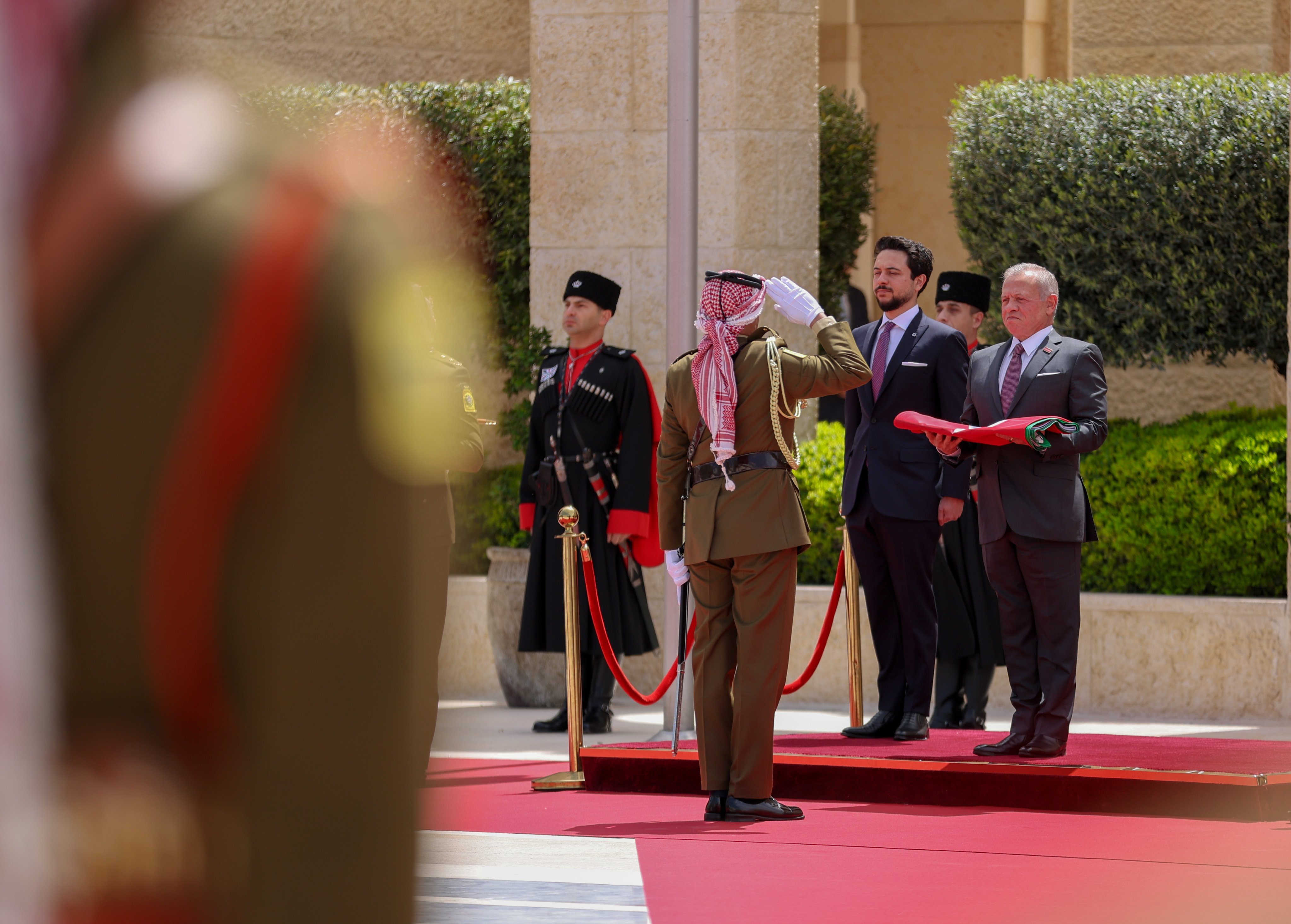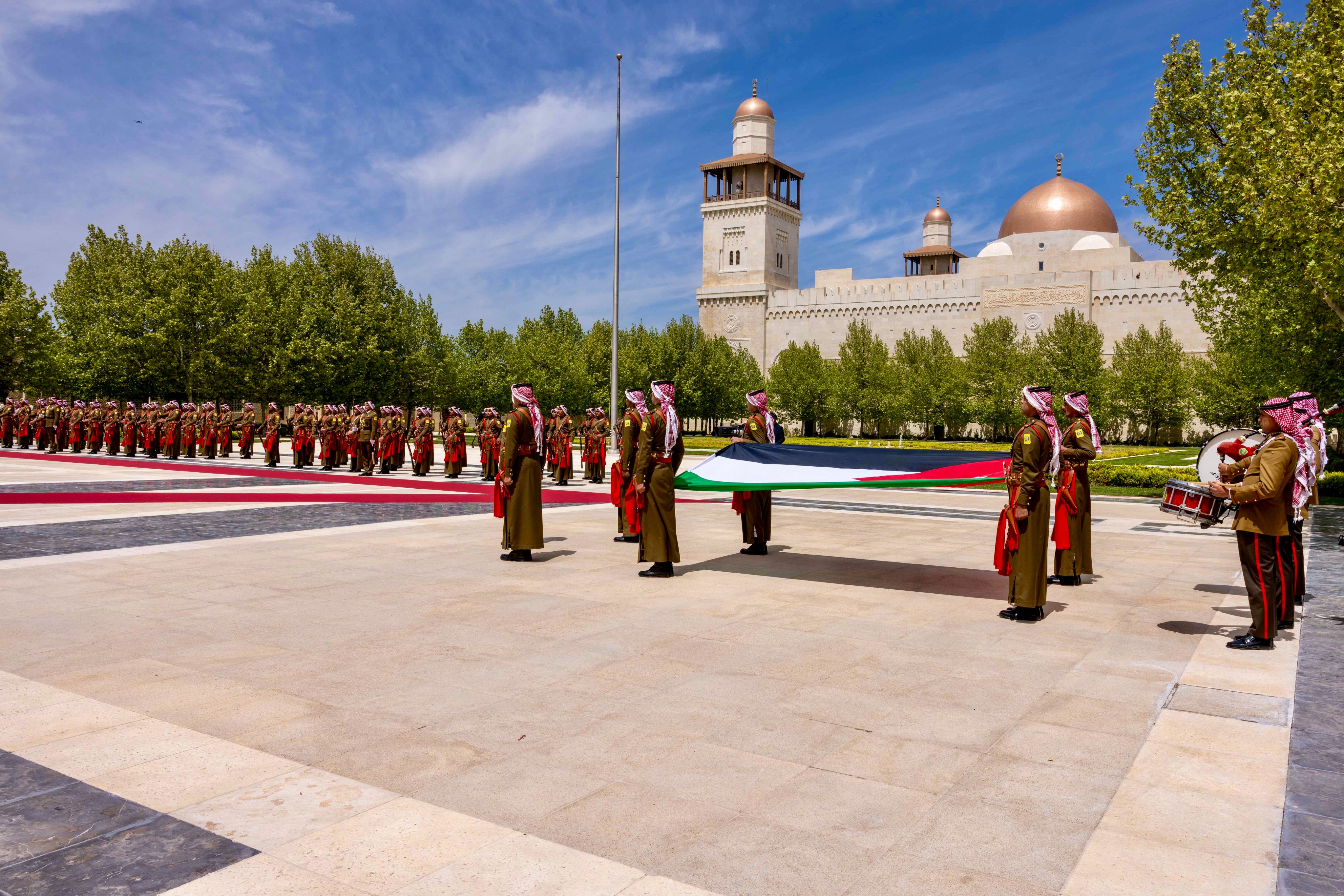 Ammon News - From the flag raising ceremony at Al Husseiniya Palace on the occasion of Jordan's National Flag Day, which falls on 16 April each year.
