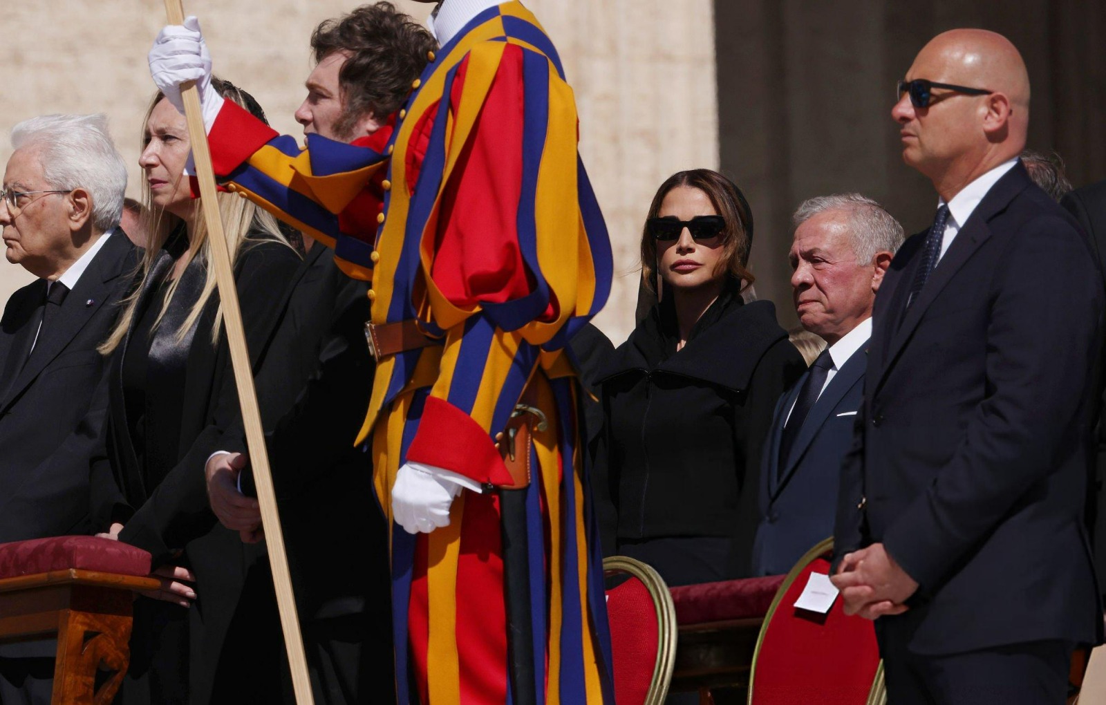 Ammon News - His Majesty King Abdullah II, accompanied by Her Majesty Queen Rania Al Abdullah, attended Pope Francis’ funeral on Saturday.