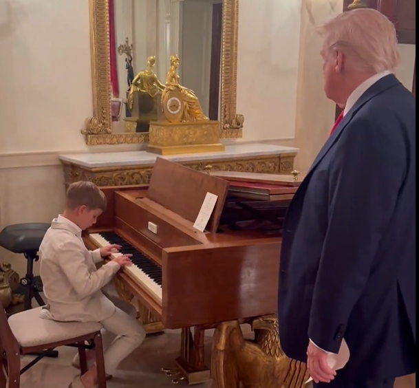 President Donald Trump was treated to a special performance on Monday evening. The president's grandson Theodore Kushner played an "original composition" on the piano for his maternal grandfather at the White House.