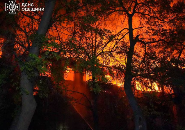 "The enemy attack damaged residential high-rises, private houses, a supermarket, a school, and cars," regional governor Oleh Kiper wrote on the Telegram messaging app. "Fires broke out in some places and are being extinguished by our rescuers."