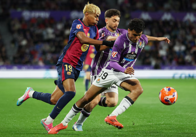 Ammon News - Barcelona extended the gap atop LaLiga to seven points with a 2-1 comeback win at relegated Real Valladolid on Saturday thanks to second-half strikes by Raphinha and Fermin Lopez.