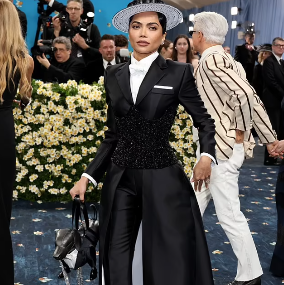 Patel herself wore a custom suit with a cape and corseted bodice from American fashion designer Thom Browne, plus a 3D-printed hat.