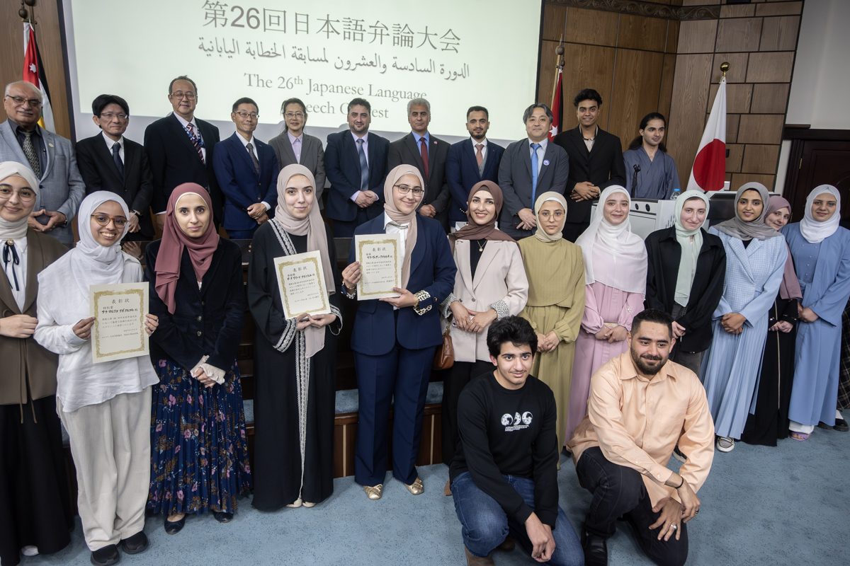 Ammon News - The Embassy of Japan in Jordan and University of Jordan jointly hosted the 26th Japanese Language Speech Contest in collaboration with the Jordan Office of Japan International Cooperation Agency (JICA), JICA Alumni Association in Jordan (JAAJ), the Japan Foundation Cairo, Japanese Community Association in Jordan, and Jordan Japan Academic Society. The Vice President for Humanities at the University of Jordan Dr. Nahed Emaish, the Dean of the Faculty of Foreign Languages Dr. Marwan Al Jarrah, the Chargé d'affaires of Japan to Jordan Ms. Watanabe Tomoko, and the Chief Representative of JICA Jordan Office Mr. Morihata Shingo attended the event, along with many other distinguished guests and participants.