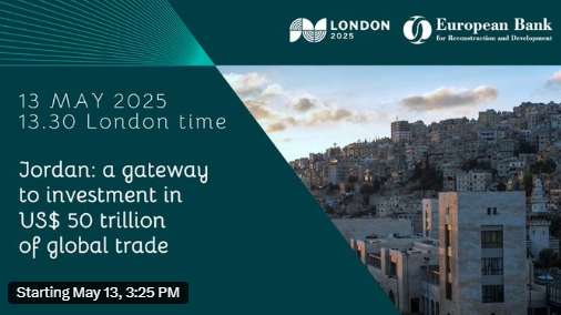 Ammon News - The European Bank for Reconstruction and Development (EBRD) will hold a special session on Jordan on Tuesday, May 13, titled "Jordan: a gateway to investment in US$ 50 trillion of global trade," with the participation of Minister of Investment Mothanna Gharaibeh and Minister of Planning and International Cooperation Zeina Toukan.