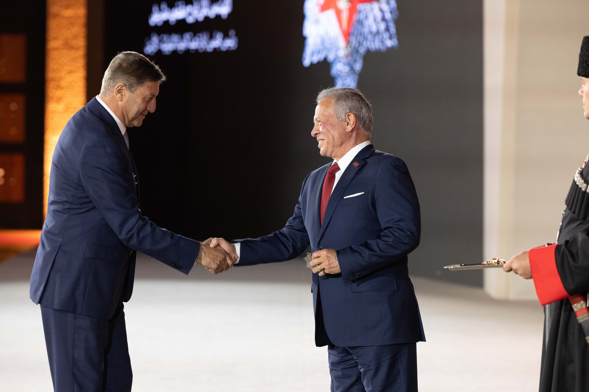 The investiture ceremony, held at Al Husseiniya Palace to mark the 79th anniversary of Jordan’s independence, was attended by Their Royal Highnesses Crown Prince Al Hussein bin Abdullah II and Prince Hashem bin Abdullah II, as well as a number of Royal family members, and senior officials and officers.