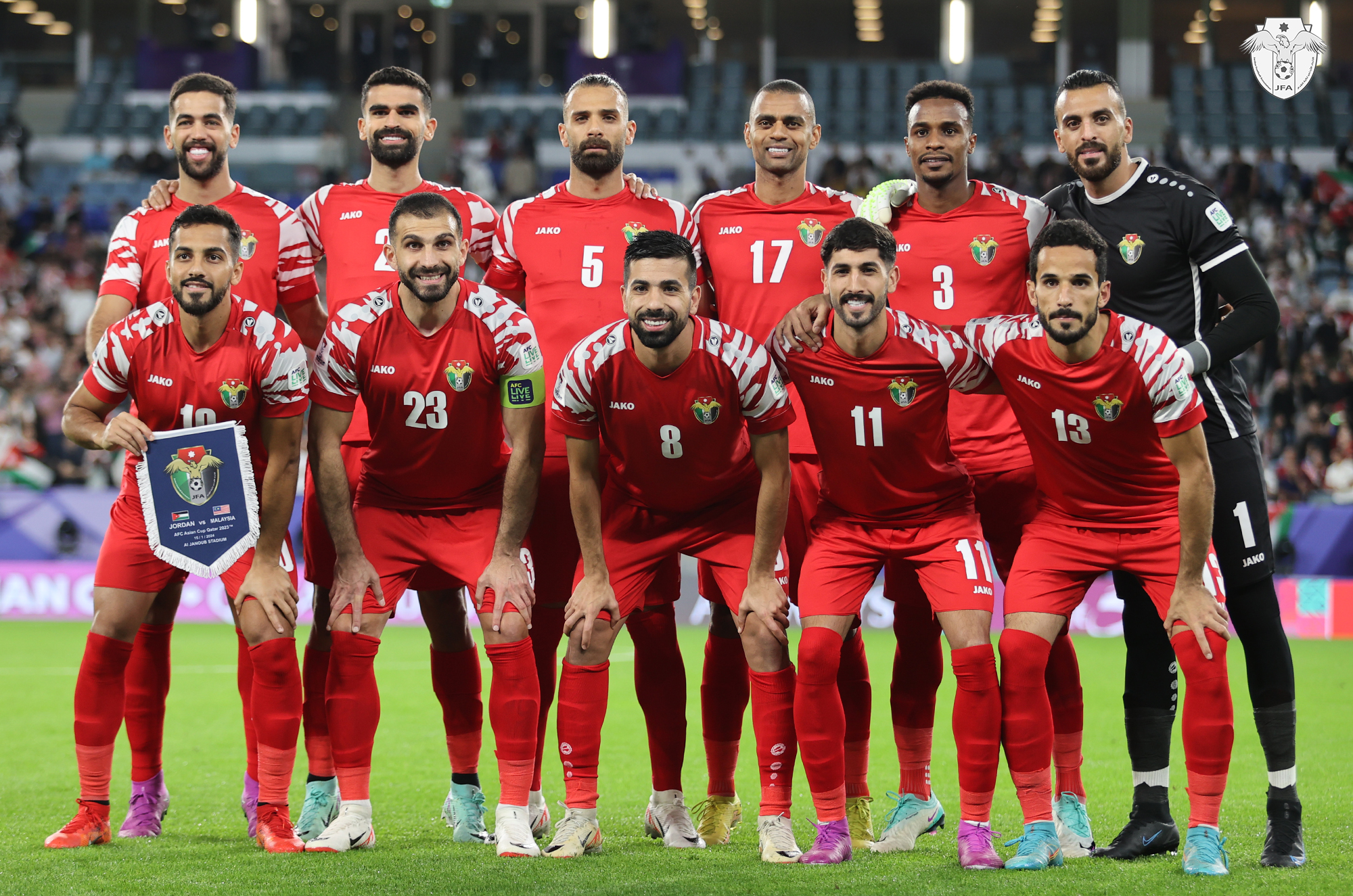 The national team list includes 29 players: Yazid Abu Laila, Abdullah Al-Fakhouri, Nour Bani Attia, Mohammed Al-Amwasi, Abdullah Naseeb, Yousef Abu Al-Jazar, Yazan Al-Arab, Hadi Al-Hourani, Salim Obaid, Hussam Abu Al-Dhahab, Mohammed Abu Al-Nadi, Adham Al-Quraishi, Ahmed Assaf, Nizar Al-Rashdan, Ibrahim Saada, Nour Al-Rawabdeh, Rajai Ayed, Amer Jamous, Mohammed Al-Dawoud, Mohammed Abu Hashesh, Muhannad Abu Taha, Ali Alwan, Mahmoud Mardi, Muhannad Samreen, Mohammed Abu Zureiq, Ali Al-Azaizeh, Musa Al-Taamari, Ibrahim Sabra, and Yazan Al-Naimat.