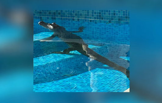 Ammon News - A Florida man woke up to discover a trespassing alligator had gotten into his yard and was beating the summer heat with a dip in his pool.