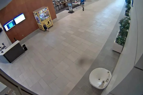 Surveillance footage from around 1 p.m. shows the child walking through the community center before heading over to the claw machine game, which appears to be filled with stuffed animals.