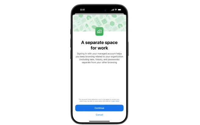 Companies that adopt Chrome Enterprise can let employees sign in to managed Google accounts on iOS and switch freely between their personal and work accounts within Chrome. Like on desktop, users switch by tapping their account icon and then selecting the other profile to browse with.