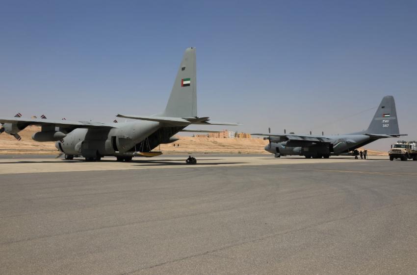 The airdrops were carried out by two C-130 aircraft from the Royal Jordanian Air Force and the UAE Air Force, carrying 17 tons of food aid and basic necessities.