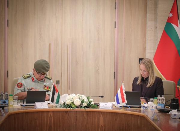 The agreement was signed on behalf of the Jordan Armed Forces by the Assistant for Planning, Organization and Defense Resources, and on behalf of the Netherlands by the Ambassador to Amman, Stella Kluth. It seeks to expand avenues of military cooperation through the exchange of expertise and training visits, the organization of specialized courses, and enhanced coordination in planning, defense, and military training.