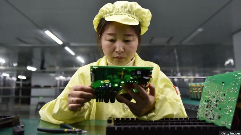 Ammon News - Getty Images A women in a yellow attire holds a green circuit board in a production facility in East ChinaGetty Images