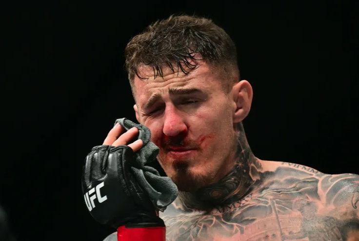 Inside the final minute of the round, Gane continued to out-strike Aspinall until his poke to the eye.