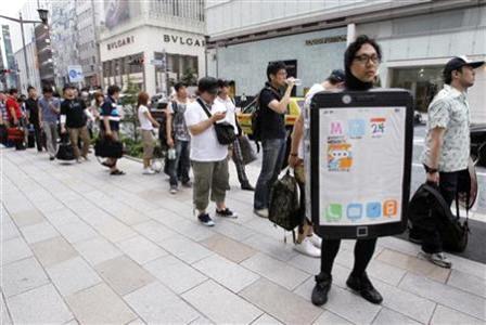 **Photo: Customers waiting for the release of the new iPhone 4 line up outside Apple Inc's store in the Ginza district of Tokyo June 24, 2010.