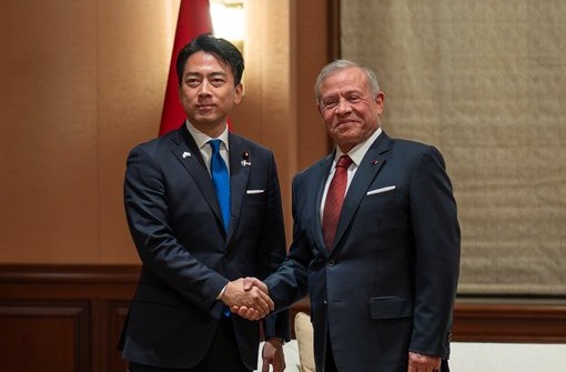 Ammon News - His Majesty King Abdullah II met with Japan Defence Minister Koizumi Shinjiro in Tokyo on Monday to discuss the latest developments in the region, and opportunities to enhance military cooperation between Jordan and Japan.