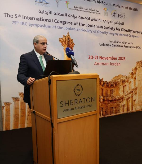 Ammon News - Minister of Health Dr. Ibrahim Al-Bdour emphasized Jordan’s growing regional leadership in bariatric surgery as he inaugurated the 5th International Conference of the Jordanian Society for Bariatric Surgery on Thursday.