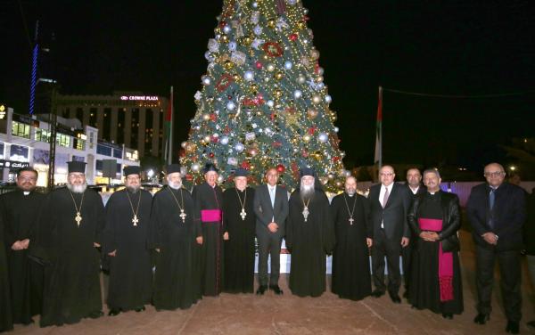 Ammon News - Head of the Greater Amman Municipality committee Yousef Shawarbeh on Tuesday evening lit the Christmas tree at the Sixth Circle, in a gesture celebrating the values of brotherhood, tolerance and goodwill in the Kingdom.