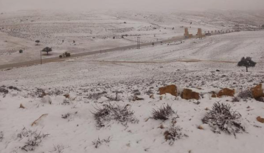 Snowfall also occurred in the highlands of Tafila Governorate, particularly in the Rashadiya highlands.