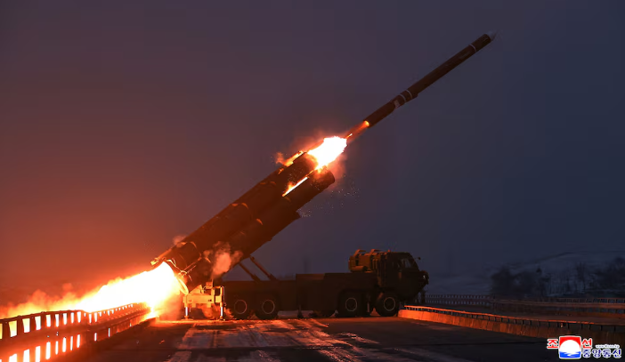 Ammon News - North Korean leader Kim Jong Un oversaw the launch of long-range strategic cruise missiles on Sunday, which confirmed the integrity of its nuclear power and counter-attack readiness in the face of security threats, state media KCNA said on Monday.