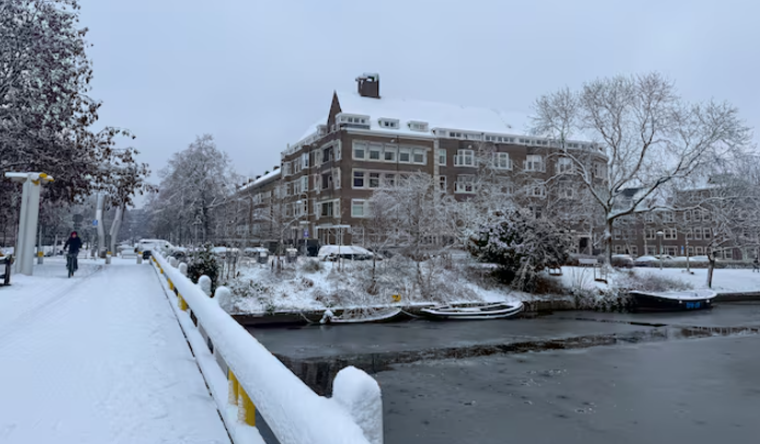 Ammon News - Snow and ice continued to disrupt traffic in the Netherlands on Tuesday halting all trains and forcing the cancellation of hundreds of flights.