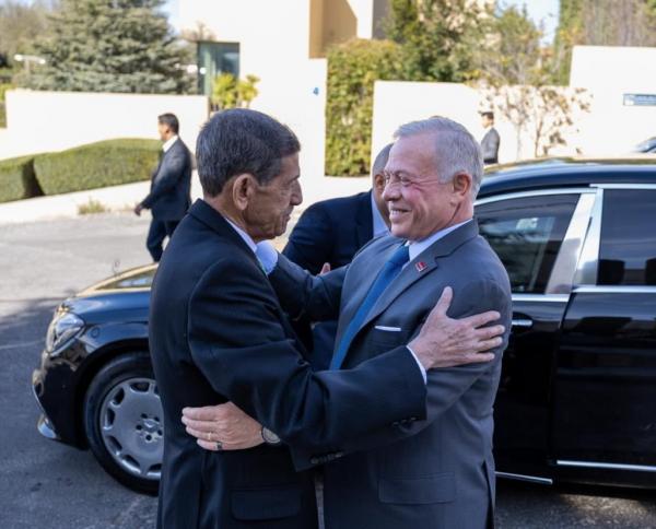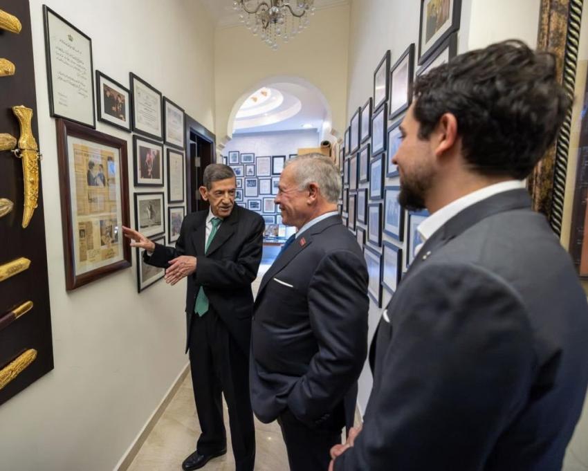Ammon News - His Majesty King Abdullah II, accompanied by His Royal Highness Crown Prince Al Hussein bin Abdullah II, visited on Saturday former Royal Court Chief Yousef Dalabeeh at his residence.