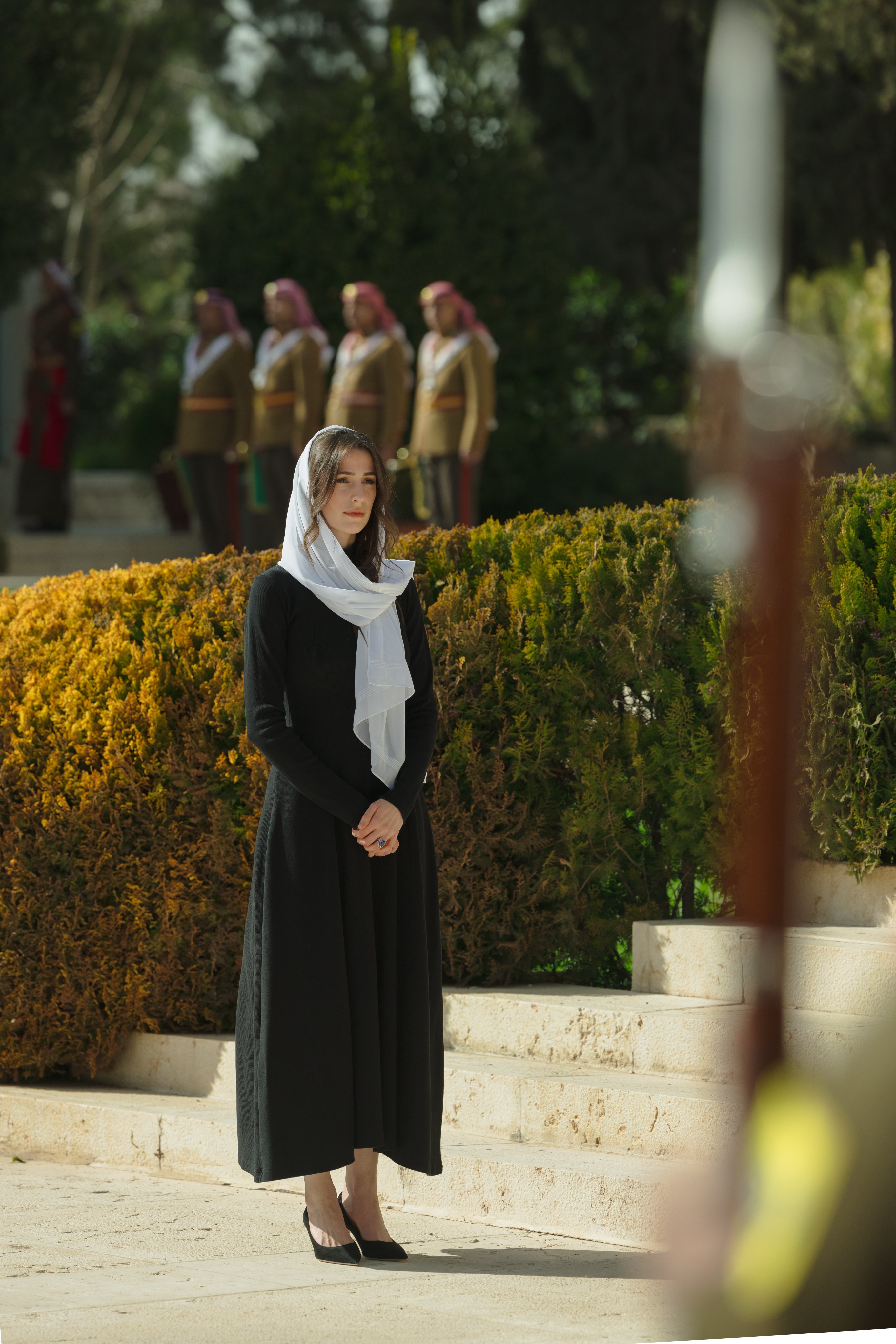 The Crown Prince, accompanied by Her Royal Highness Princess Rajwa Al Hussein, recited verses from the Holy Quran and laid a wreath at the tomb.