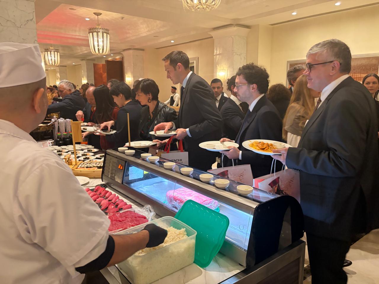 Japanese culture was presented from traditional Japanese art of floral arrangement, “Ikebana” (flower arrangement) adorned around the stage to the gentle tones of the koto, a classical Japanese string instrument, resonated throughout the hall. Ambassador Asari himself graciously prepared Japanese traditional tea to the guests of honour. Ambassador noted that the tea ceremony is an art embodying Japanese philosophy, and it has been practiced for centuries. The guests enjoyed “Sushi” carefully prepared by the Embassy Chef Mr. Nakamura.