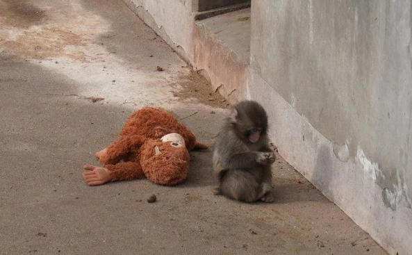 Ammon News - A lonely baby monkey has become an unwitting star on the internet after being photographed with his beloved plush toy.
