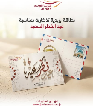 Ammon News - Jordan Post announced the release of two special commemorative postal cards marking two significant occasions: the upcoming Eid Al-Fitr holiday and the anniversary of the Battle of Karameh. The cards will be available to the public starting Tuesday morning.