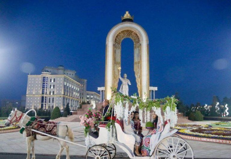 On March 21, 2026, the Nowruz procession entered the capital Dushanbe through its four gates, led by symbolic figures such as Baba Dehkan and the Queen of Spring, amid a festive atmosphere.