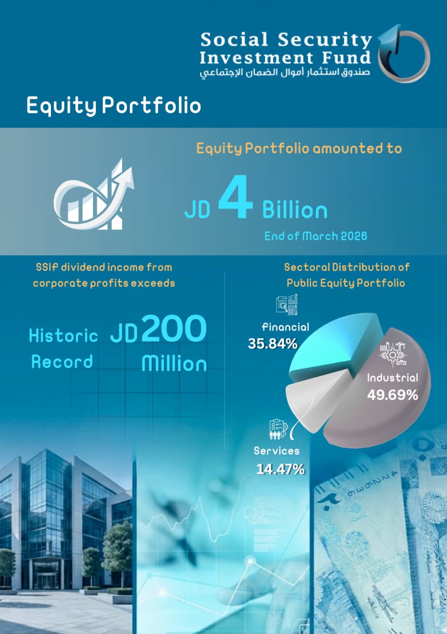 The Social Security Investment Fund continues to consolidate its position as a long-term institutional investor committed to balancing financial returns with sustainability, through measured investments that reinforce the resilience of Jordan's social security system, align with national economic priorities, advance strategic public-private partnerships, and generate quality employment opportunities for Jordanians.