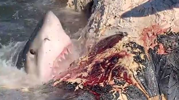Fisherman Captures Incredible Footage Of Shark Devouring Whale Carcass