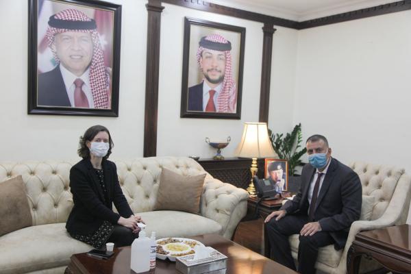 Minister of Interior, Mazen Faraya discussed with the British Ambassador to Jordan, Bridget Brend, ways to develop the prospects for bilateral cooperation, especially in the security and police fields.