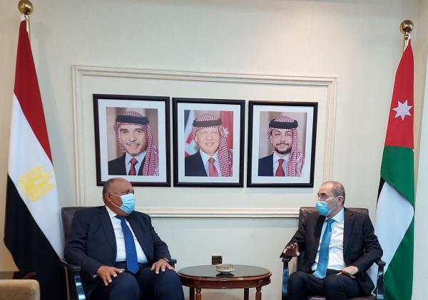 Deputy Premier and Minister of Foreign Affairs and Expatriates Ayman Safadi Monday held talks with his Egyptian counterpart Sameh Shoukry, within the context of the ongoing coordination and consultation to counter illegal Israeli practices that undermine the peace process, and make the ceasefire in the Gaza Strip hold.