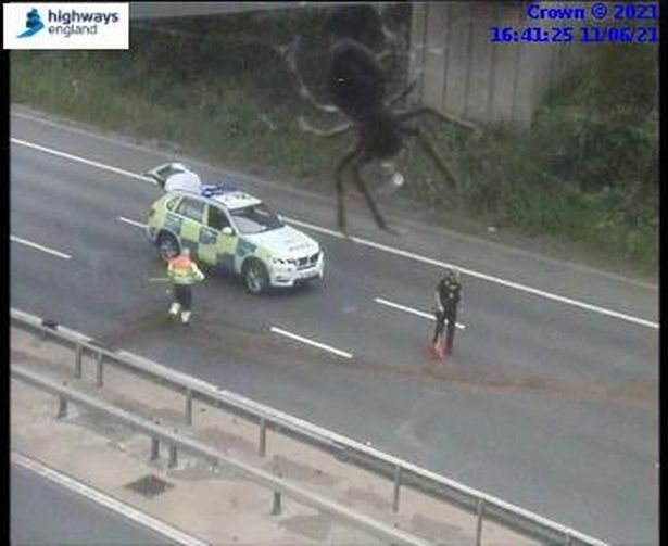 But thankfully the spider, which was spotted between junctions seven and eight, near Worcester, is just regular-sized.