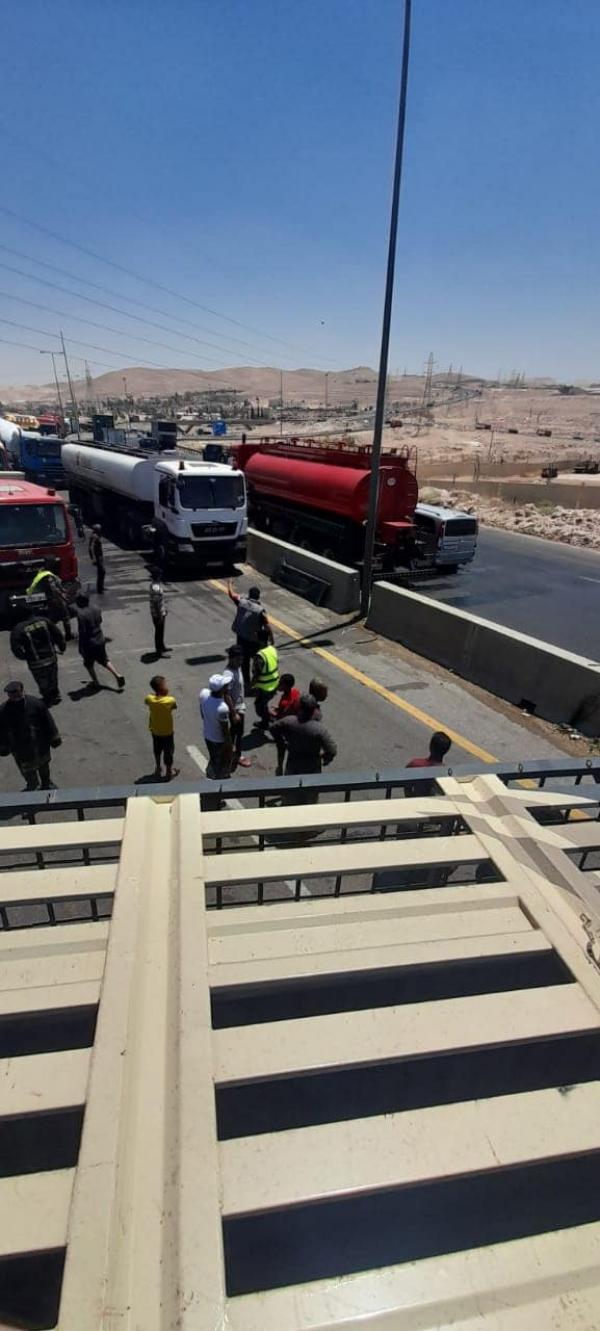 Civil Defence crews were Tuesday dealing with an accident on a road outside Amman in which a truck carrying livestock overturned killing 150 heads of sheep.