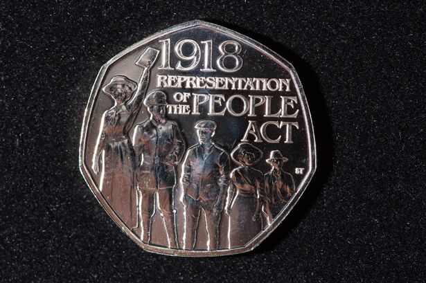 The 50p was minted to celebrate a law which gave the vote to women over the age of 30 - provided they owned property. It also gave the vote to all men aged over 21.