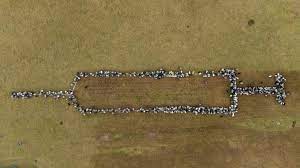 700 sheep and goats were arranged in the shape of a syringe to encourage vaccinations