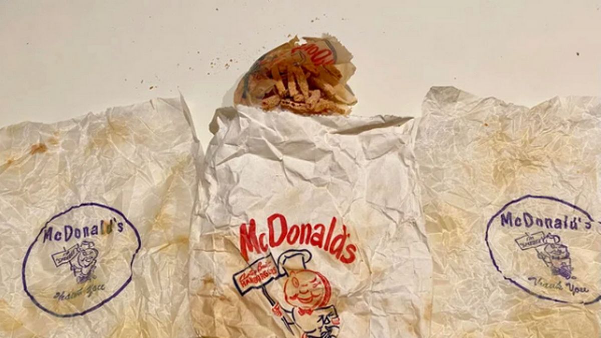 A man was in for a surprise while rennovating his bathroom, after discovering a 60-year-old McDonald's meal tucked inside the wall, complete with half-eaten fries.