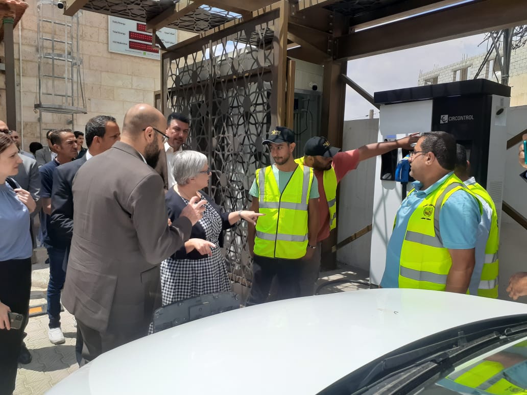 The Canadian Ambassador in Amman, Donica Pottie, Monday inaugurated the project of the EV Charging Point in Ajloun, the photovoltaic generation system and smart bus shelters in the bus station in downtown Ajloun with a JD120,000 Canadian fund.