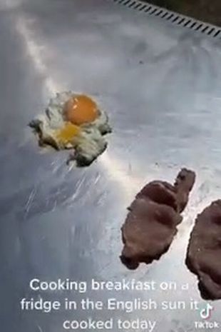 A man managed to cook bacon, eggs, and beans on a metal fridge outside his house - and it took just 30 minutes, as the heatwave bakes Britain and turns the outdoors into an oven.