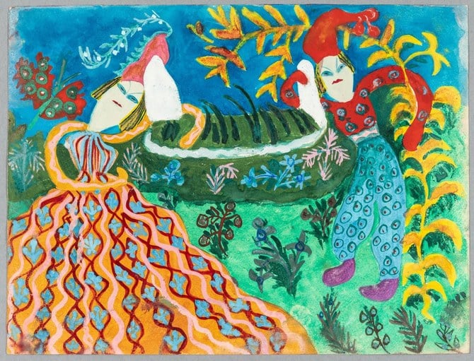 A new exhibition at the Institut du monde Arabe in Paris, with works donated by Claude and France Lemand, presents a selection of her drawings, gouache paintings and sculptures in a comprehensive tribute to Baya’s career, which spanned more than five decades. Many of the masterpieces on display in “Baya: Women in Their Garden,” which runs until March 2023, come from archives left by the artist’s adoptive mother, Marguerite Caminat.