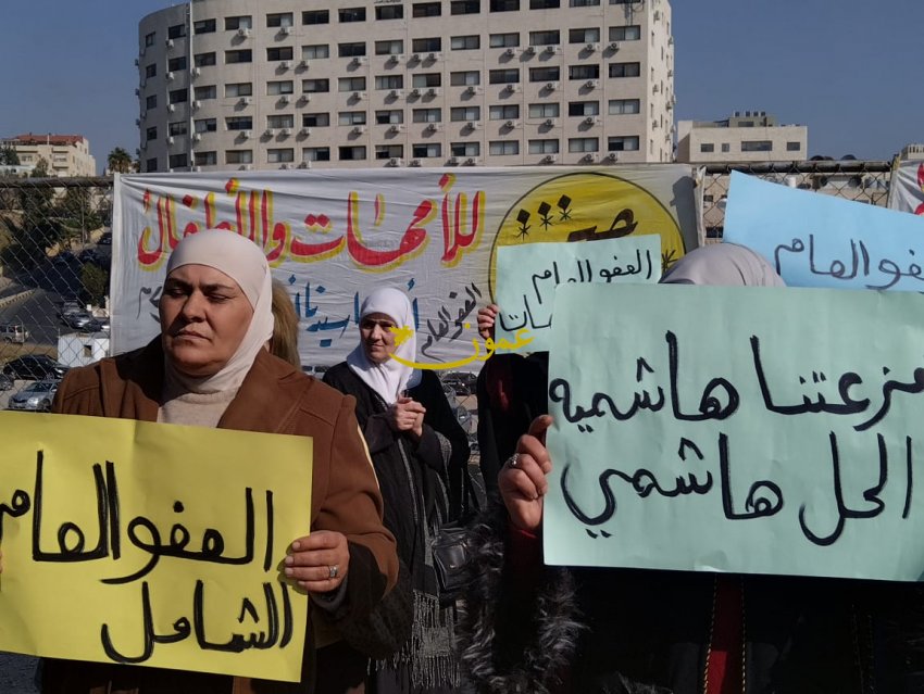Dozens of Jordanians, most of them women, staged a sit-in in front of Parliament Wednesday, to demand the issuance of a comprehensive general amnesty law.