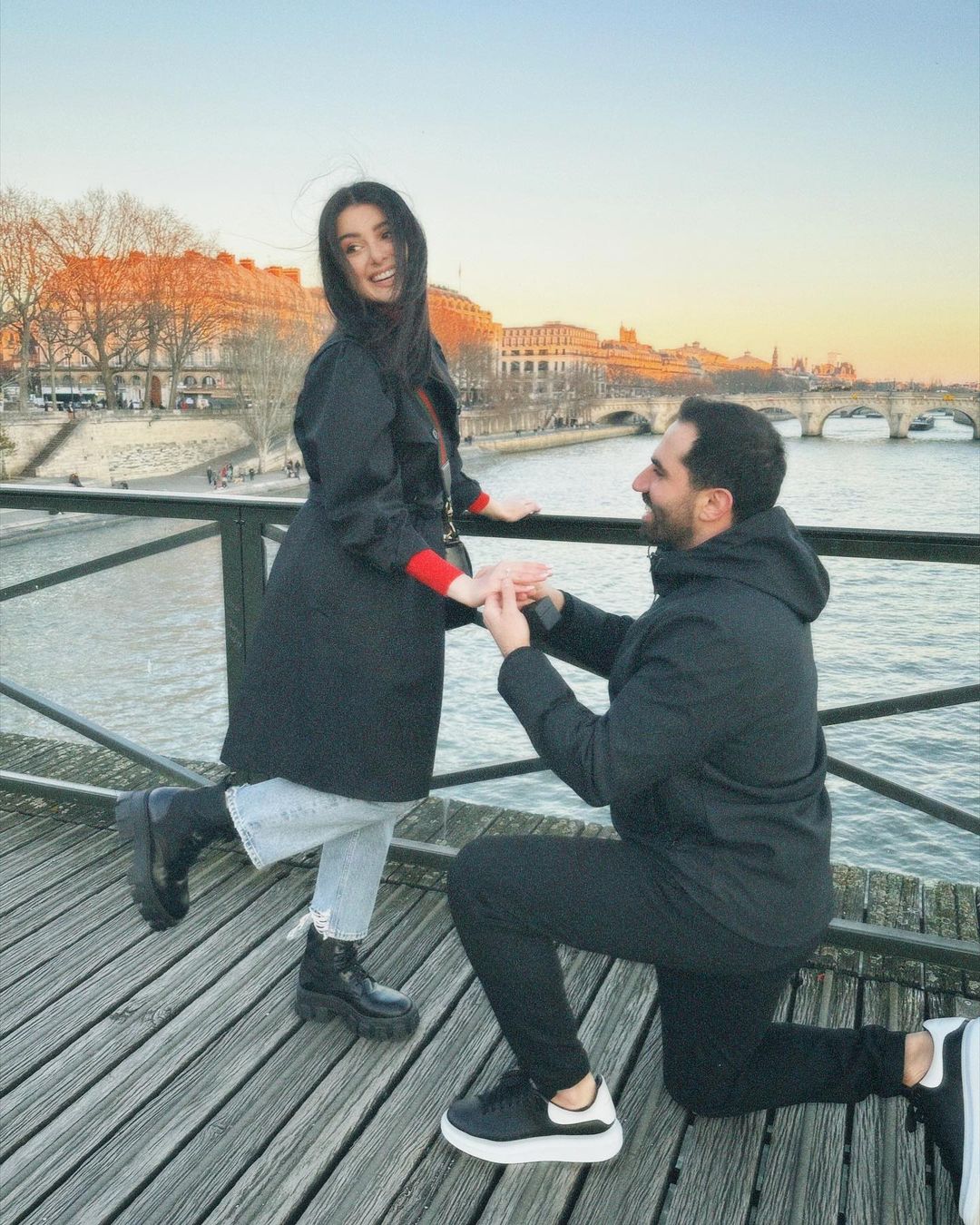 The 26-year-old Beirut native shared a sweet Instagram photo with her new fiancé in Paris, who popped the question in Paris