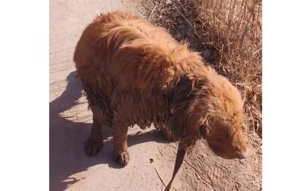 The golden retriever struggled to walk after being pulled from debris following a 6.2-magnitude earthquake.