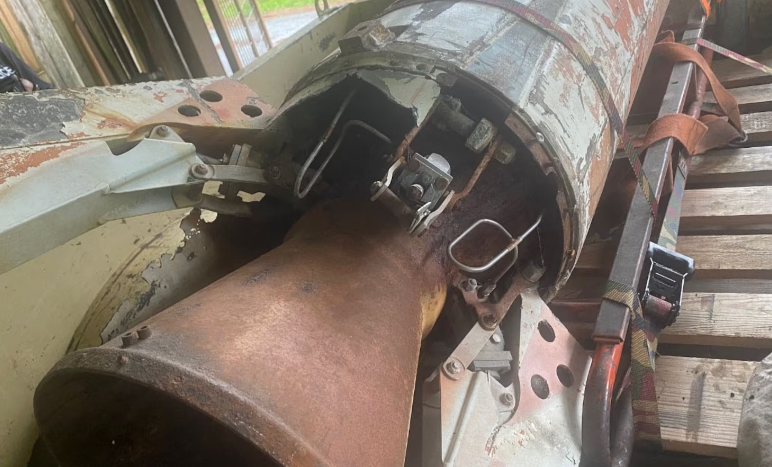 Bomb squad members inspected the rusting object and found it was a Douglas AIR-2 Genie (previous designation MB-1), an unguided air-to-air rocket that is designed to carry a 1.5 kt W25 nuclear warhead.