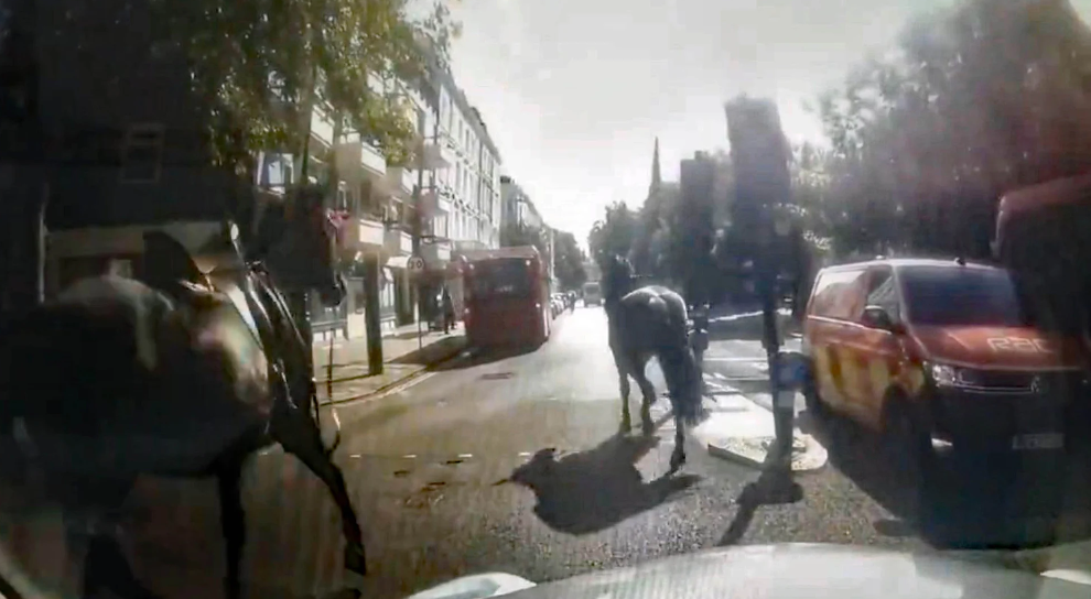Along with the lead horse, which was being led rather than ridden at the time, two riders were thrown from their horses as the animals ran free through the capital’s streets.