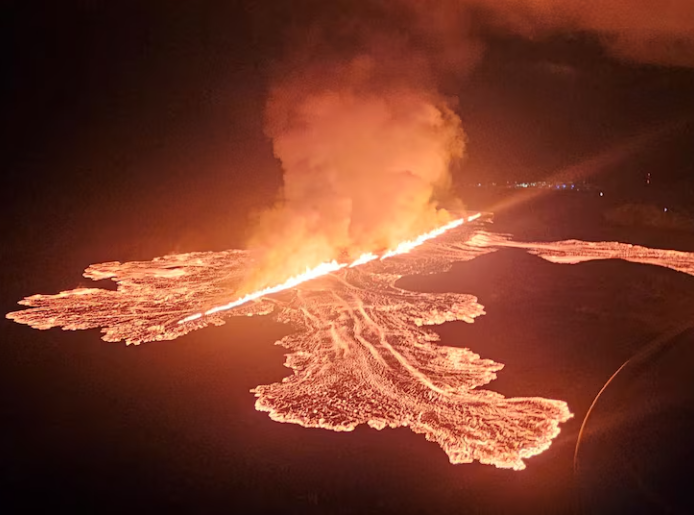 Social media livestreams from the area showed glowing hot lava in bright yellow and orange shades shooting up into the night sky. The first signs of an eruption were recorded just 45 minutes before a massive ground fissure, now estimated to be around 3 km (1.9 miles) long, was opened by magma forcing its way through the earth's crust, Iceland's meteorological office said.