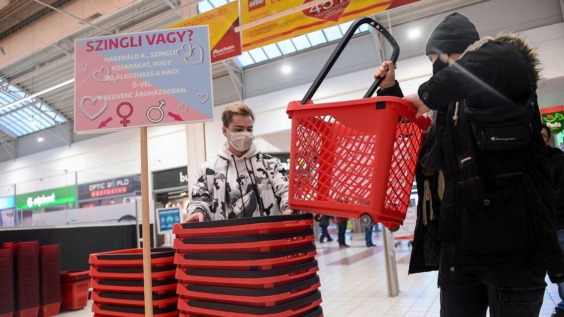 “It’s a great idea in this time of coronavirus. It’s an opportunity for those seeking partners, and entertaining and funny as well,” one shopper Csilla Beres, 25, told AFP while grabbing a basket.